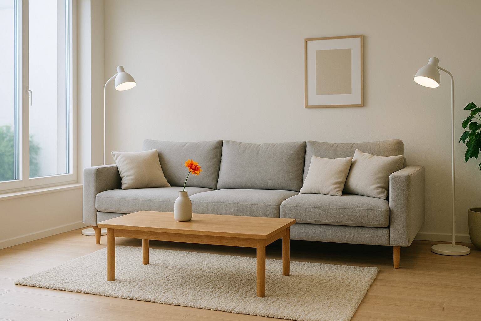 Glem ikke naturligt lys om dagen. Store vinduer eller spejle kan reflektere sollys ind i rummet og få det til at føles mere åbent og indbydende. Det naturlige lys kombineret med strategisk placerede lamper gør stuen levende både dag og nat.